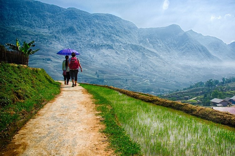 Trekking from Sapa to the Black H’mong village of Y Linh Ho and Lao Chai where excellent panoramas of the larger valley, paddy terraced fields and the H’mong village are offered. We take a small local path leading into the bottom of the valley, where some stalls are available that serve tea and fruits; a perfect spot to take a rest and have lunch. After lunch you will visit the Zay people of Ta Van, which lies in the middle of the Muong Hoa valley.